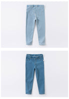 يمكن للفتيات الاستمتاع بالراحة والمرونة التي توفرها هذه السراويل الضيقة المصنوعة من قماش الدنيم باللون الأزرق، والمكونة من 77% قطن و18% بوليستر و5% سباندكس. تم تصميم هذه السراويل الضيقة بشكل مثالي لتحقيق التوازن بين المرونة والبنية في أنماط الحياة النشطة.