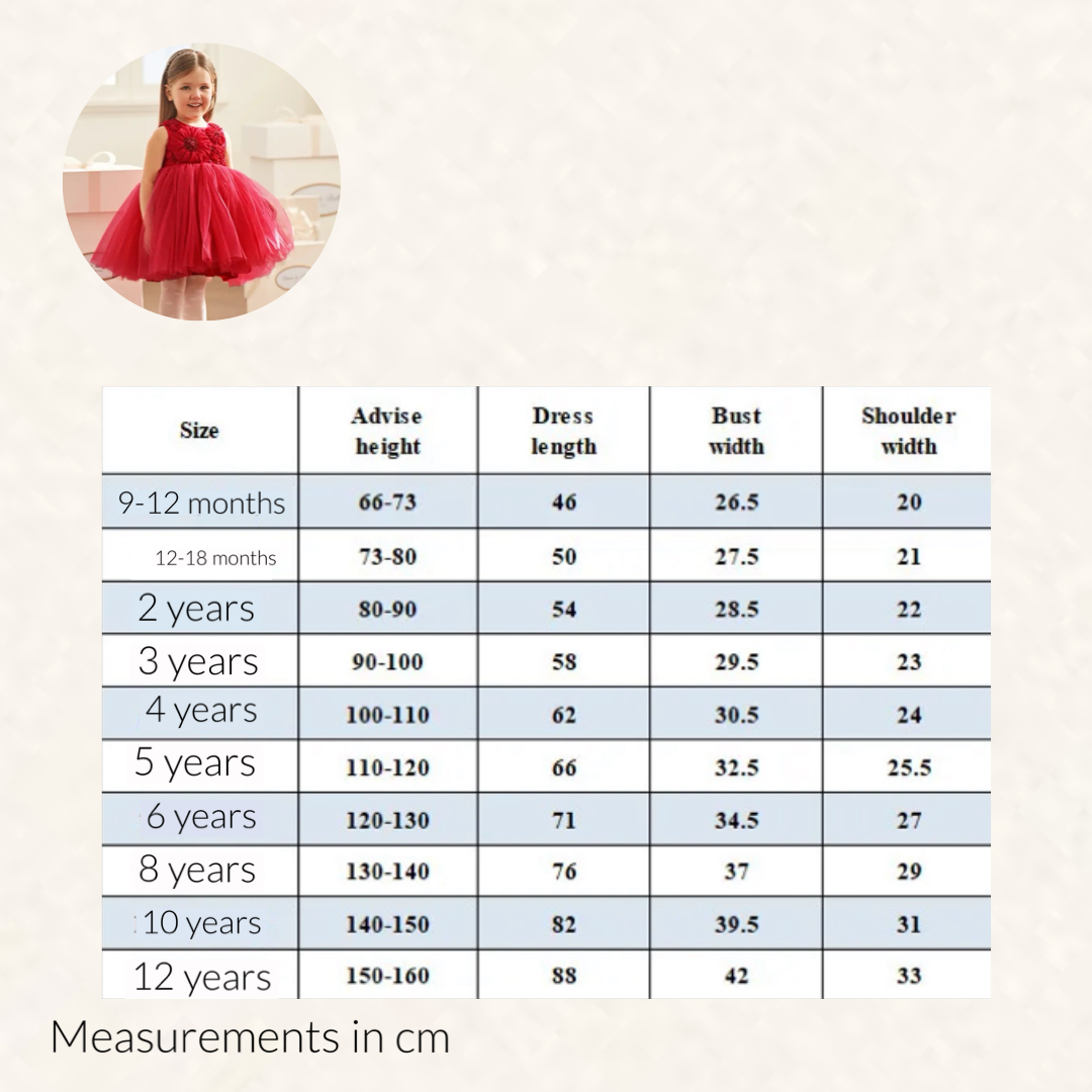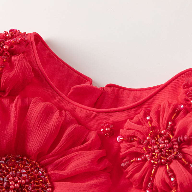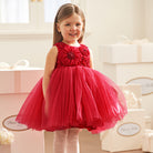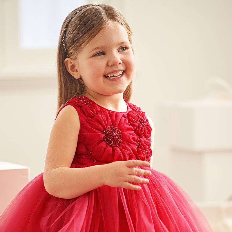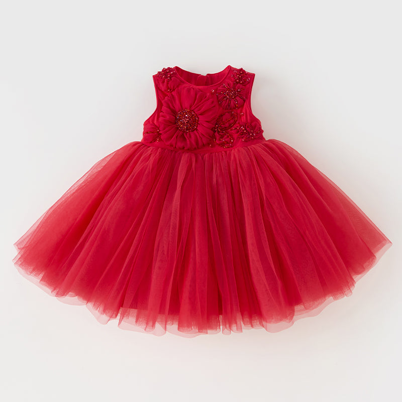 Elegant Red Party Dress: This vibrant red party dress features exquisite flower embroidery on the bodice and a voluminous tulle skirt, making it perfect for special occasions such as parties and weddings. The soft cotton lining ensures comfort, allowing your little one to enjoy the festivities with ease.
