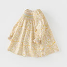 This 100%-cotton long-sleeved dress for girls features vibrant smocking details across the chest, adding a playful and stylish touch. Perfect for fun yet fashion-conscious girls, its high-quality cotton fabric ensures lasting softness even after multiple washes.