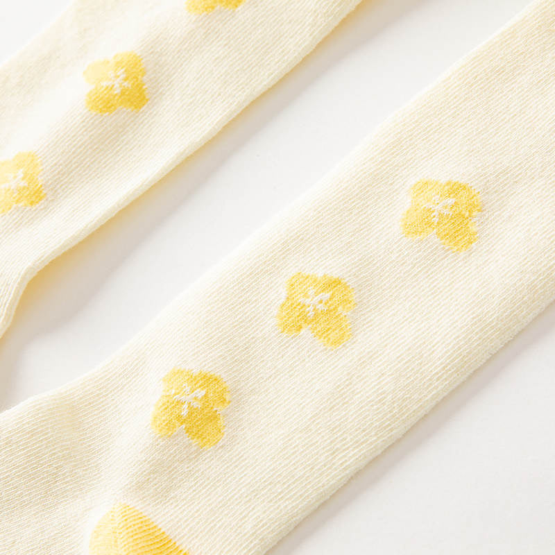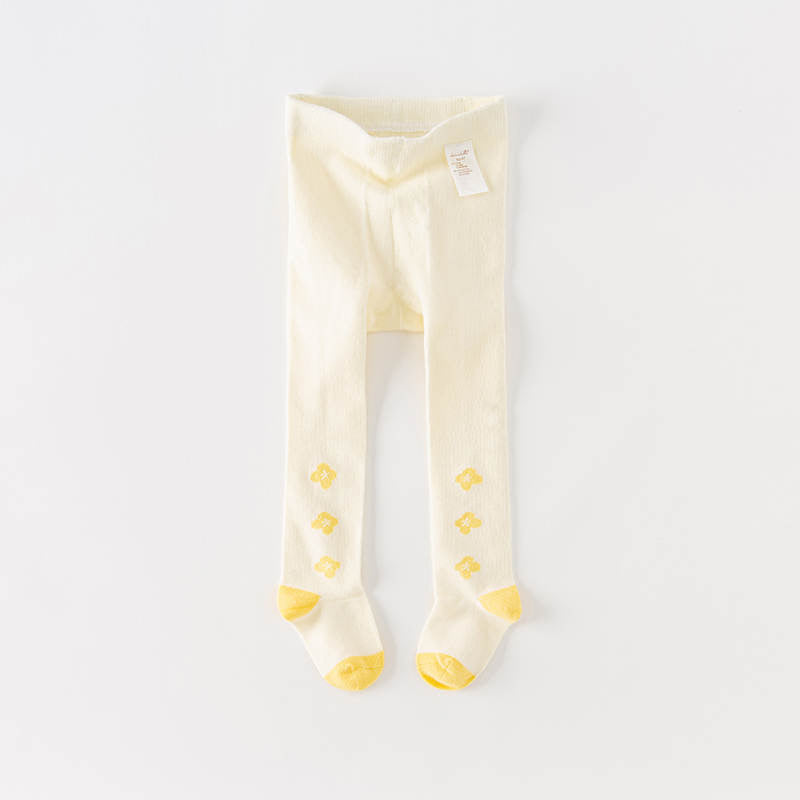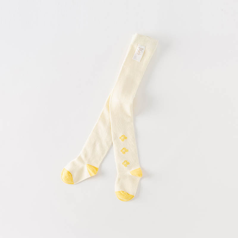 Beige tights with charming yellow details, perfect for adding a pop of color to any outfit. These tights are crafted for both comfort and durability.