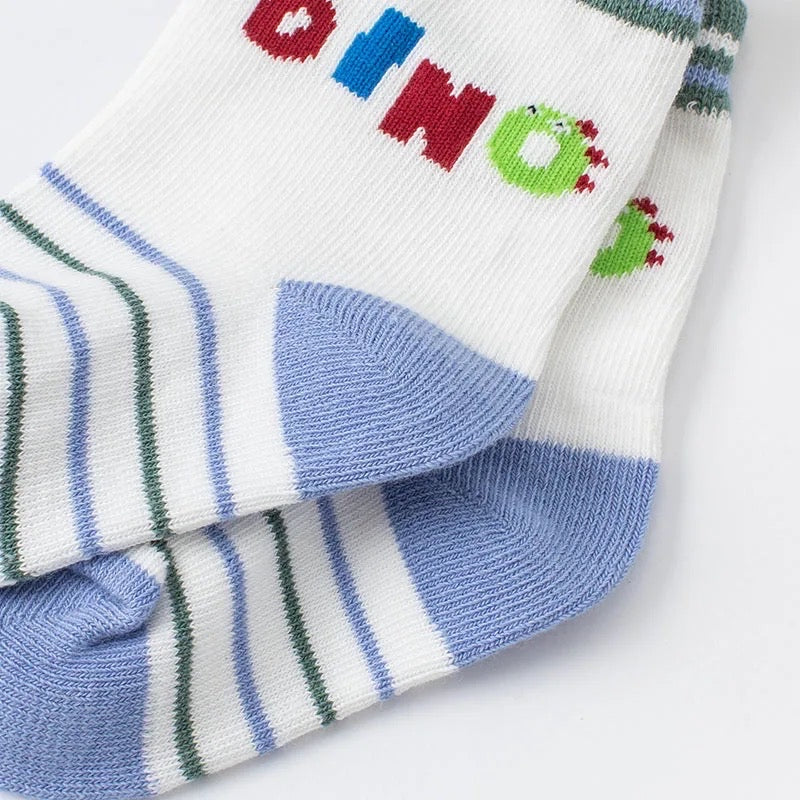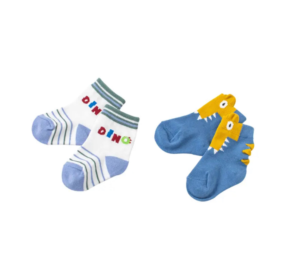 This 2-pack of blue dinosaur socks for boys is made of 73% cotton, 19% nylon, 5% polyester, and 3% spandex. For best results, hand wash. These socks are made to last, and their cheerful blue hue is sure to make your little one smile - perfect for special occasions or everyday wear!