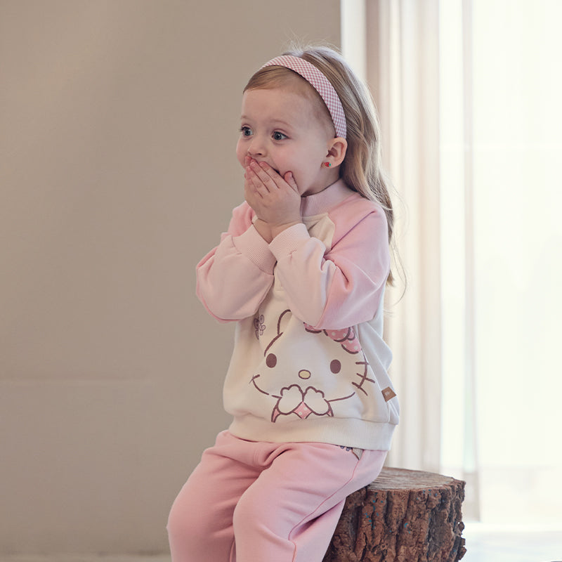 Let your little one showcase their love for Hello Kitty with this adorable sweatshirt and jogger set. Designed for cozy comfort and style, the set features a cute Hello Kitty graphic on the sweatshirt and soft, stretchable fabric for all-day wear. Perfect for playdates, casual outings, or relaxing at home, this set combines practicality with a touch of charm.