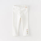White leggings with flower details on the side for girls. Crafted from a soft and breathable blend of 94% cotton and 10% spandex, ensuring all-day comfort and flexibility. The delicate floral accents add a stylish touch, making these leggings a versatile wardrobe essential.